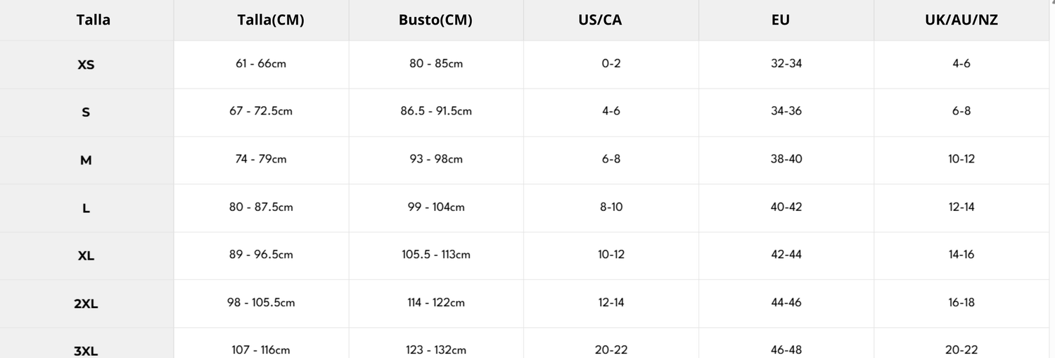 Guía de tallas